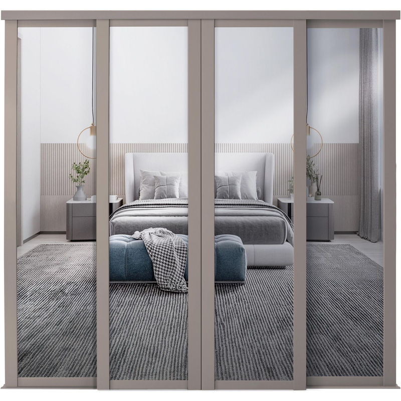 Spacepro Shaker 4 Door Sliding Wardrobe Kit Framed Mirror Door Door Kit (610mm) in Pebble