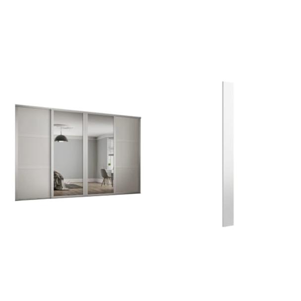 Spacepro Shaker 4 Wardrobe Door Kit White Framed 2898mm W + Spacepro Wardrobe Multi Purpose Liner White 2800mm x 90mm x 18mm