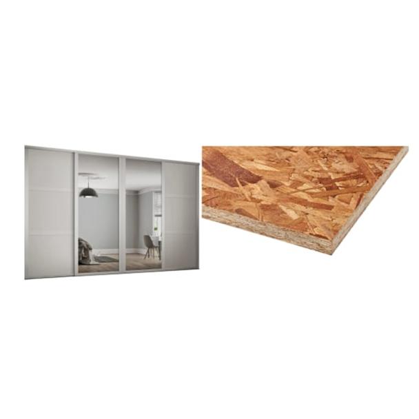 Spacepro Shaker 4 Wardrobe Door Kit White Framed 3506mm W + General Purpose OSB 3 Sheet 11 x 1220 x 2440mm