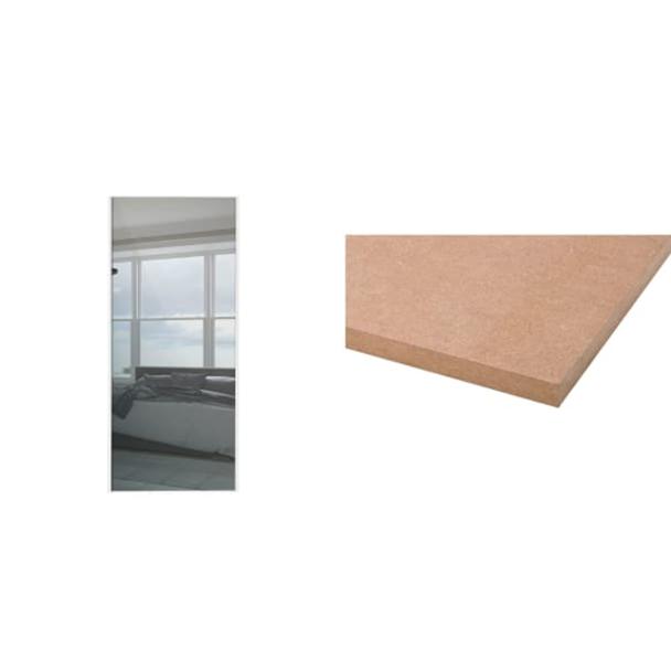 Spacepro Sliding Wardrobe Door White Framed Mirror 2220 x 762mm + General Purpose MDF Sheet 18 x 1220 x 2440mm