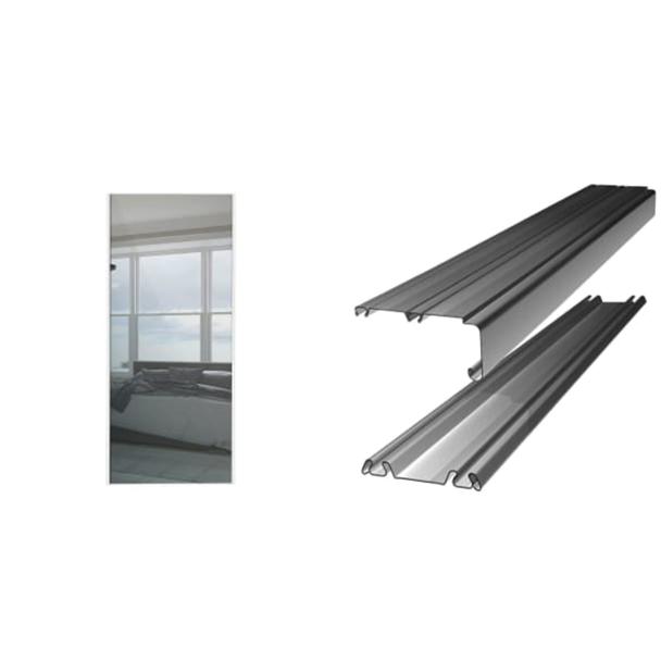 Spacepro Sliding Wardrobe Door White Framed Mirror 2220 x 914mm + Spacepro Sliding Door Trackset Silver 2 7 3 6m
