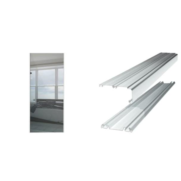 Spacepro Sliding Wardrobe Door White Framed Mirror 2220 x 914mm + Spacepro Sliding Door Trackset White 2 7 3 6m