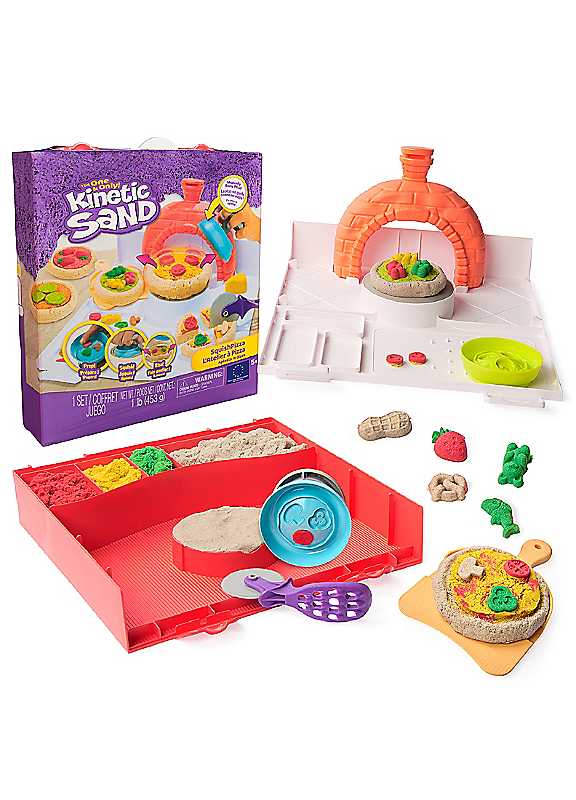 Create magically rising pizzas with Kinetic Sand SquishPizza. This themed playset will inspire little chefs to shape, mould and customise their own pizzas. With 452g of Kinetic Sand in 4 colours, 2 squishers and 3 tools, kids can prep by moulding topping shapes like pepperoni and vegetables, then squish down their pizza creations, watching them pop up and rise like a real pizza, sparking imaginative pretend play.Age Suitability: 5+ YearsNot suitable for children under 3 years old.