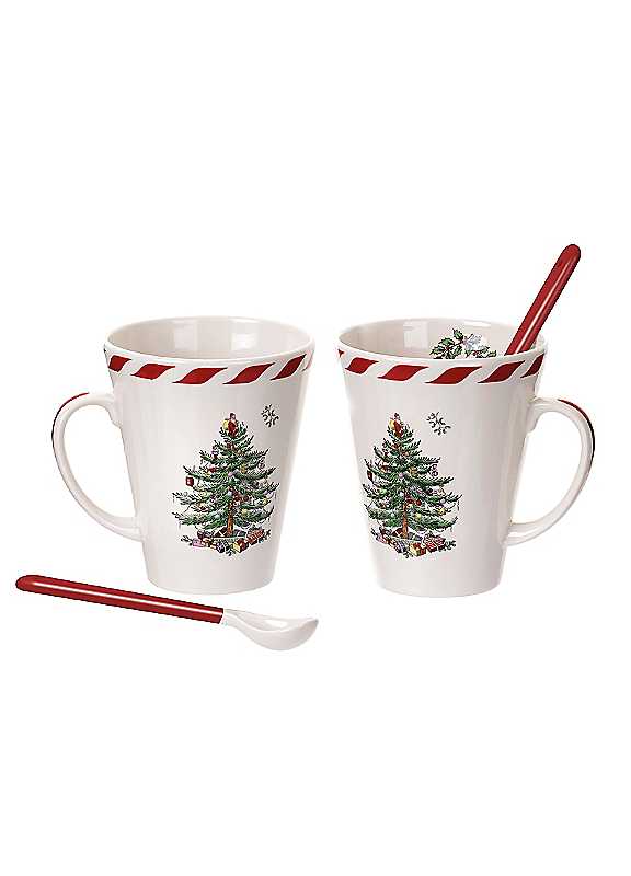 Enjoy the most delicious hot chocolates in these Christmas Tree Peppermint mugs. Made from the finest porcelain, each mug comes with a matching red and white spoon. And don't forget the iconic Christmas Tree design to make this set wonderfully festive. Treat yourself, or gift a friend.397mlMicrowave & dishwasher safeMug dimensions approx. 11.6H x 12W x 9.5D cm