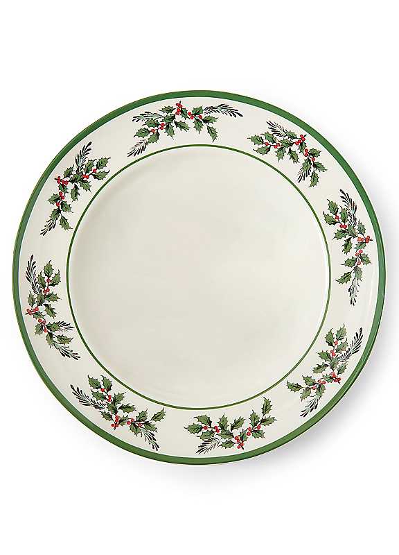 Bring a clean fresh look to the holiday table with Christmas Tree Holly Dinner Plates. With beautiful holly accents on the border and a white centre, these Holly dinner plates refresh an existing Christmas Tree collection or can be the start of a new holiday collection. Create your own unique table with serving pieces from any of the Christmas Tree collections. A perfect set to use all winter long.Dishwasher, microwave, freezer & oven safeDimensions approx. 26H x 26W x 4.5D cm