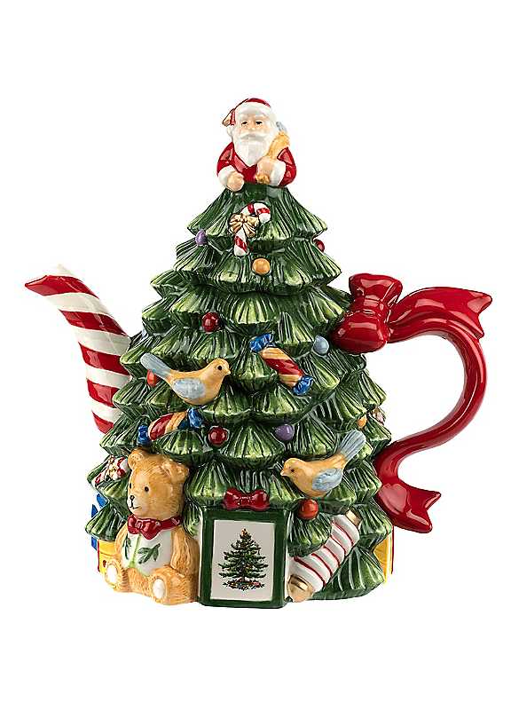 A wonderful Christmas gift for a tea-loving friend, this Spode Christmas Tree tree-shaped Teapot features beautiful detailing of baubles, gifts and jolly St. Nick. Treat yourself or someone special this Christmas.792mlWipe clean with damp clothDimensions approx. 21.5H x 22.6W x 12.7D cm