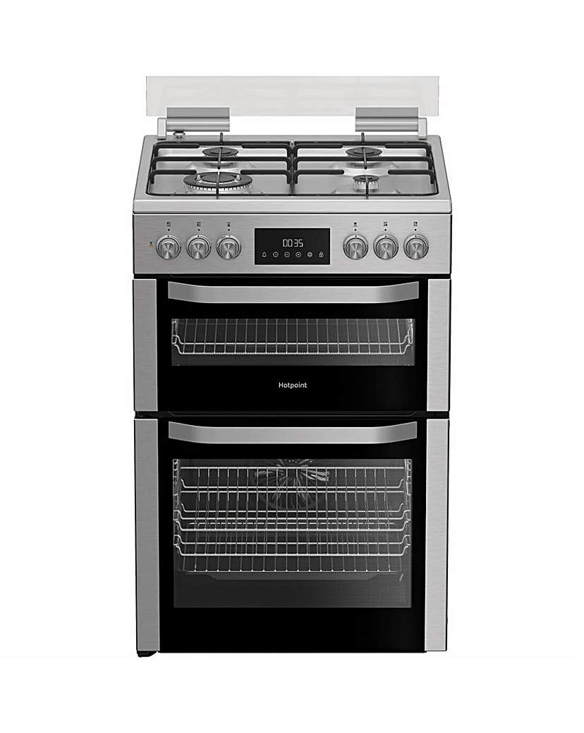 Thoughtfully designed with the latest technology and a timeless style, this Hotpoint freestanding cooker is the perfect addition to your kitchen. Finished in stainless steel, it is ideal for everything from hearty family favourites to adventurous new recipes. This 60cm width cooker has an impressively large main oven, giving you plenty of space to cook with ease. Complemented by a smaller top oven, this cooker gives you added flexibility to cook a variety of meals, whatever the occasion. Catalytic Liners in both ovens catch grease and fat splatters, burning them off while you cook, so all you need to do is wipe away any residue for a hassle-free clean. The gas hob offers both convenience and stability, featuring durable matt enamel supports to keep pans secure. The glass lid helps protect your kitchen from splatters and aligns with your work surface when closed, creating additional space when the cooker is not in use. If you don't have access to natural gas, there's a handy kit to easily convert it to liquefied petroleum gas (Lpg). On top of these great features, this cooker also has an A energy rating, delivering outstanding performance while maintaining excellent energy efficiency. Catalytic Liners in Both Cavities. Matte Enamel Pan Supports. Glass Lid. LPG Convertible. With our installation offer, we will provide positioning of the product in the room of your choice and removal of packaging, disconnection of your old appliance and connection of the new one with a basic test of the machine and take away of the old appliance and recycling of it. 1 Year Labour/10 Years Parts.