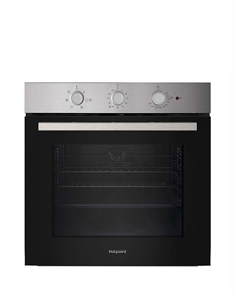 This product includes Recycling of your old appliance. Transform your kitchen with this Hotpoint Class 2 oven, which blends advanced technology and refined design for an enhanced cooking experience. Featuring a sleek stainless steel finish and flush dials for smooth interaction, this oven offers 5 cooking functions to help you achieve flawless meals every time. Thanks to Multiflow technology, heat is evenly distributed throughout the spacious 71L cavity so you can cook a complete family meal on 3 levels simultaneously without any flavour transfer, saving you both energy and time. For a crisp, golden finish, the Turbo Grill combines grilling with enhanced heat circulation, ensuring even cooking and flawless results. Theres also a handy timer to keep track of cooking times, so you dont have to worry about being distracted. When it comes to cleaning, let Hotpoint do the hard work for you. The quick and eco-friendly Diamond Clean cycle uses the power of steam to soften hardened residue so it can be wiped away. The oven door is also easy to remove with a simple click, while the Tilting Grill unhooks and drops down, offering hassle-free cleaning. Installation is easy with the UK fitted plug - simply remove the old appliance and plug in your new one. This appliance also includes the below award-winning recycling program: 1. Product Unpacking and Packaging Recycling: At the consumer's home, we unpack the product and ensure that ALL packaging materials are recycled. Our packaging is specifically designed to be 100% recyclable. 2. Weee (Waste Electrical and Electronic Equipment) Collection: We collect old products, classified as Weee, and ensure they are directed to the appropriate waste flow at our local depots. These items are then sent to government-approved Weee recycling plants. Capacity - 71L, Multiflow Technology, Steam Technology Cleaning, Click&Clean, Tilting Grill, Minute Minder, Turbo Grill, Plug & Play, Energy Rating - A, 1 Year Labour/10 Years Parts Guarantee