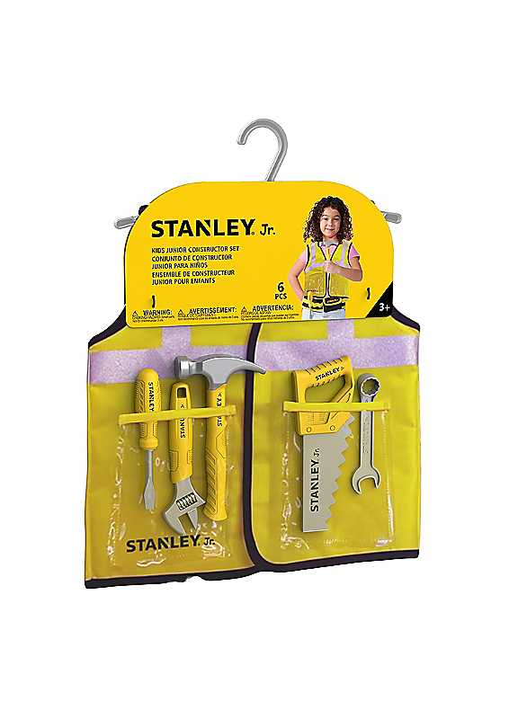 Stanley Jr. Kids Junior Construction Set - Build Like a Pro! Let your little builder take on exciting construction projects with the Stanley Jr. Kids Junior Construction Set! This 6-piece role-play set comes with all the essentials for young engineers and builders, inspiring hands-on creativity and skill-building fun. Complete Construction Kit - Includes a realistic construction vest, hammer, hand saw, screwdriver, open wrench, and adjustable wrench-everything a young builder needs!Authentic Role Play - The bright yellow Stanley Jr. vest and kid-sized tools encourage immersive pretend play, helping kids feel like real professionals on the job.Safe & Durable - Designed with high-quality, child-friendly materials, making it sturdy, lightweight, and safe for ages 3 and up.Encourages Hands-On Learning - Helps develop fine motor skills, coordination, and problem-solving abilities while fostering confidence and independence.Perfect Gift for Little Builders - An ideal present for birthdays, holidays, or any child who loves construction and hands-on activities!Get your child geared up and ready to build with the Stanley Jr. Kids Junior Construction Set-where fun and learning go hand in hand!Would you like any refinements to match a specific tone or