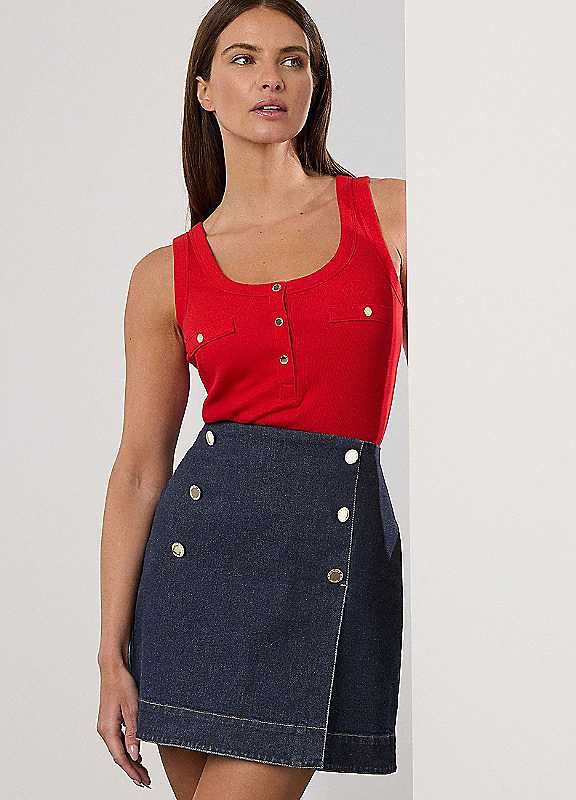 STAR by Julien Macdonald Denim Wrap Mini Skirt - Blue - Size 14