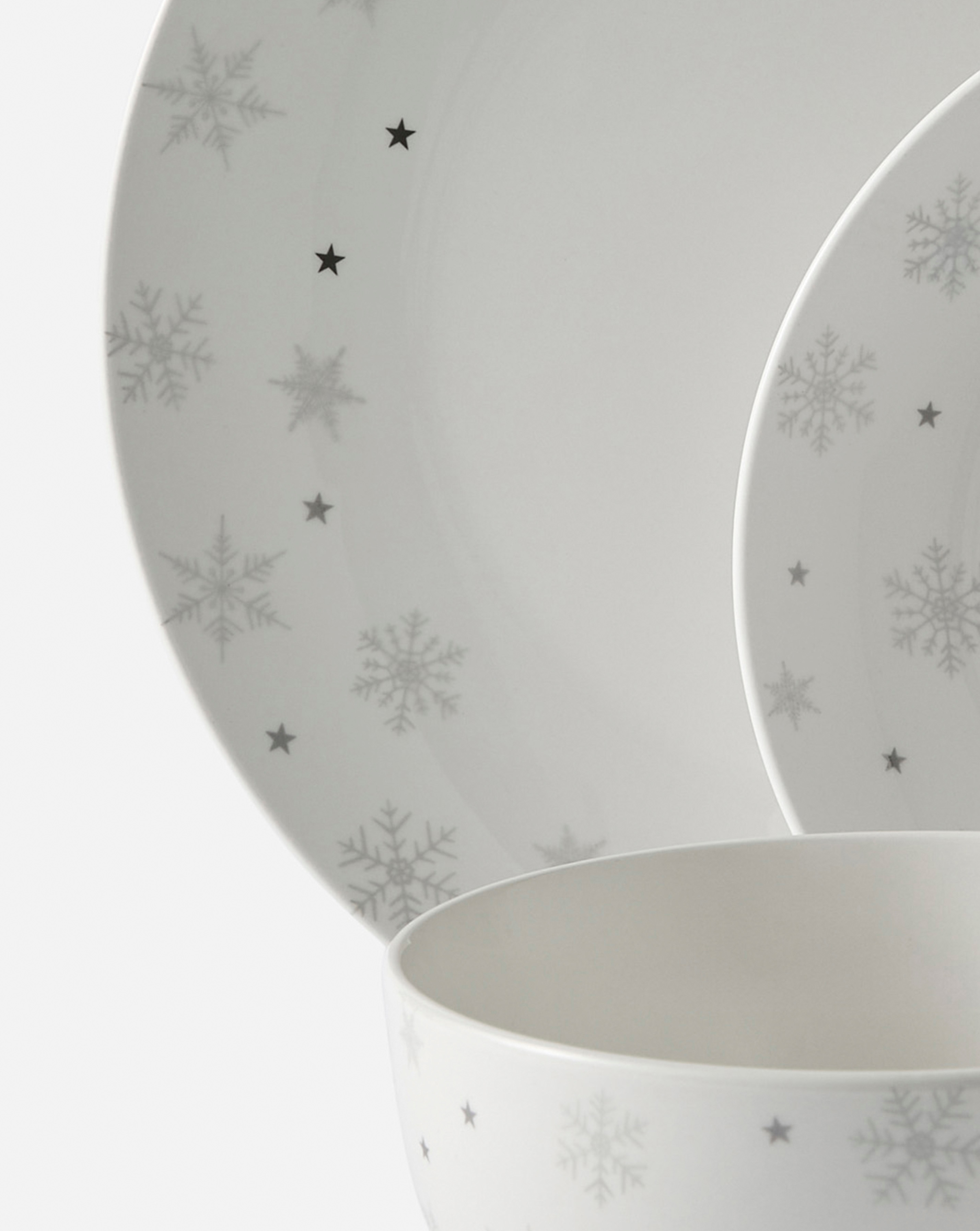 Bring a touch of magic to your table with this stunning 12-piece dinner set, featuring beautiful artwork accented with metallic silver on the stars. Made from fine porcelain, it includes large plates, small plates, and bowls - four of each. Due to the delicate metallic silver detailing, this set is not dishwasher or microwave safe. Hand wash with care to keep the design shining bright!