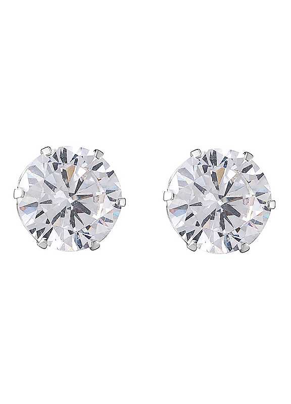 This beautiful pair of classic earrings are handmade in the UK from sterling silver. Set with a glittering white cubic zirconia in a 6-prong claw, these earrings will quickly become a go-to look, ideal for day or night. These earrings measure 7mm in diameter, perfect for that subtle sparkle. The earrings come in a basic gift box and would make an ideal gift for someone special. Made from sterling silver Sparkling at every angle Day-to-day accessory Round crystal Butterfly back fastening Stocking filler Comes in a simple gift box Recommended to be worn only by people who are older than 36 months | small earrings, prong earring setting