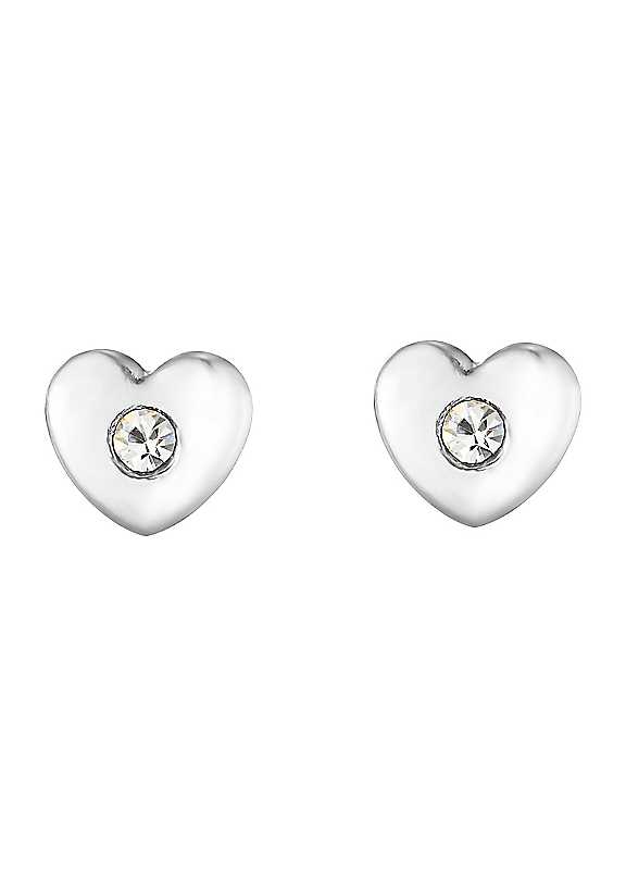 With a glittering white crystal in the centre of a sterling silver heart, these earrings will sparkle under every light making them the perfect party piece for any young girl. A lovely gift for any occasion from Christmas to a special birthday. Made from sterling silver Sparkling white crystal Butterfly back fastening Stocking filler Birthday gift Perfect for little ears Comes in a basic gift box Day-to-day accessory Recommended to be worn only by people who are older than 36 months. | simple stud earrings, small stud earrings, silver stud earrings, crystal stud earrings, white heart earrings, heart stud earrings, small silver earrings, silver crystal earrings, white crystal earrings, casual earrings, dainty silver earrings, sterling silver stud, sterling silver earrings, white earrings, cute small earrings, crystal heart earrings, heart silver earrings