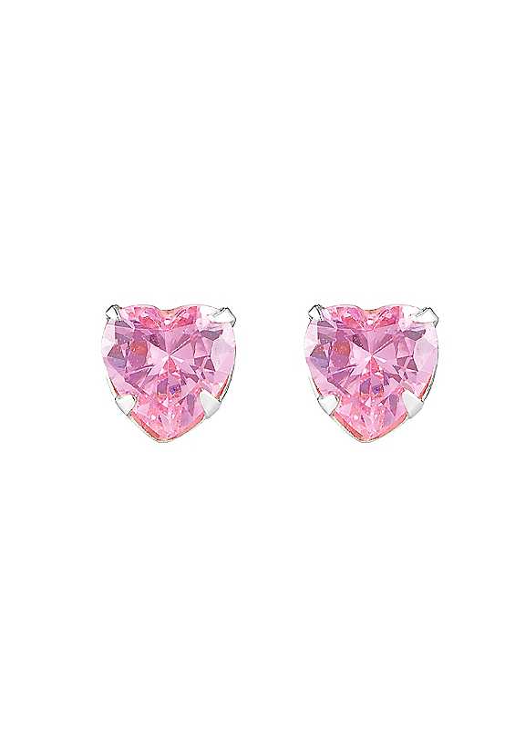 Sterling Silver Pink Cubic Ziconia Heart Stud Earrings - Size 36