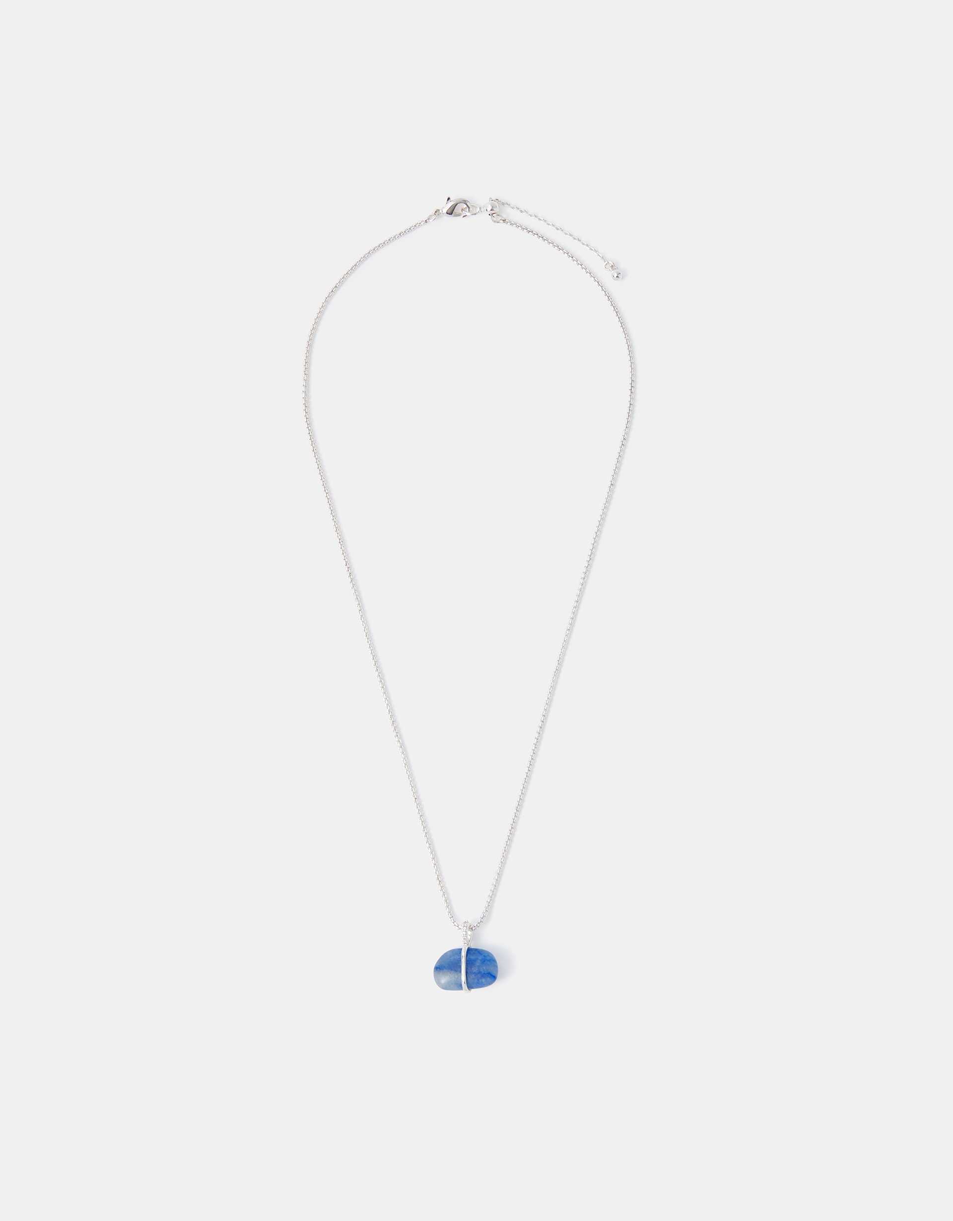 Sterling Silver-plated Blue Quartz Pendant Necklace - Accessorize