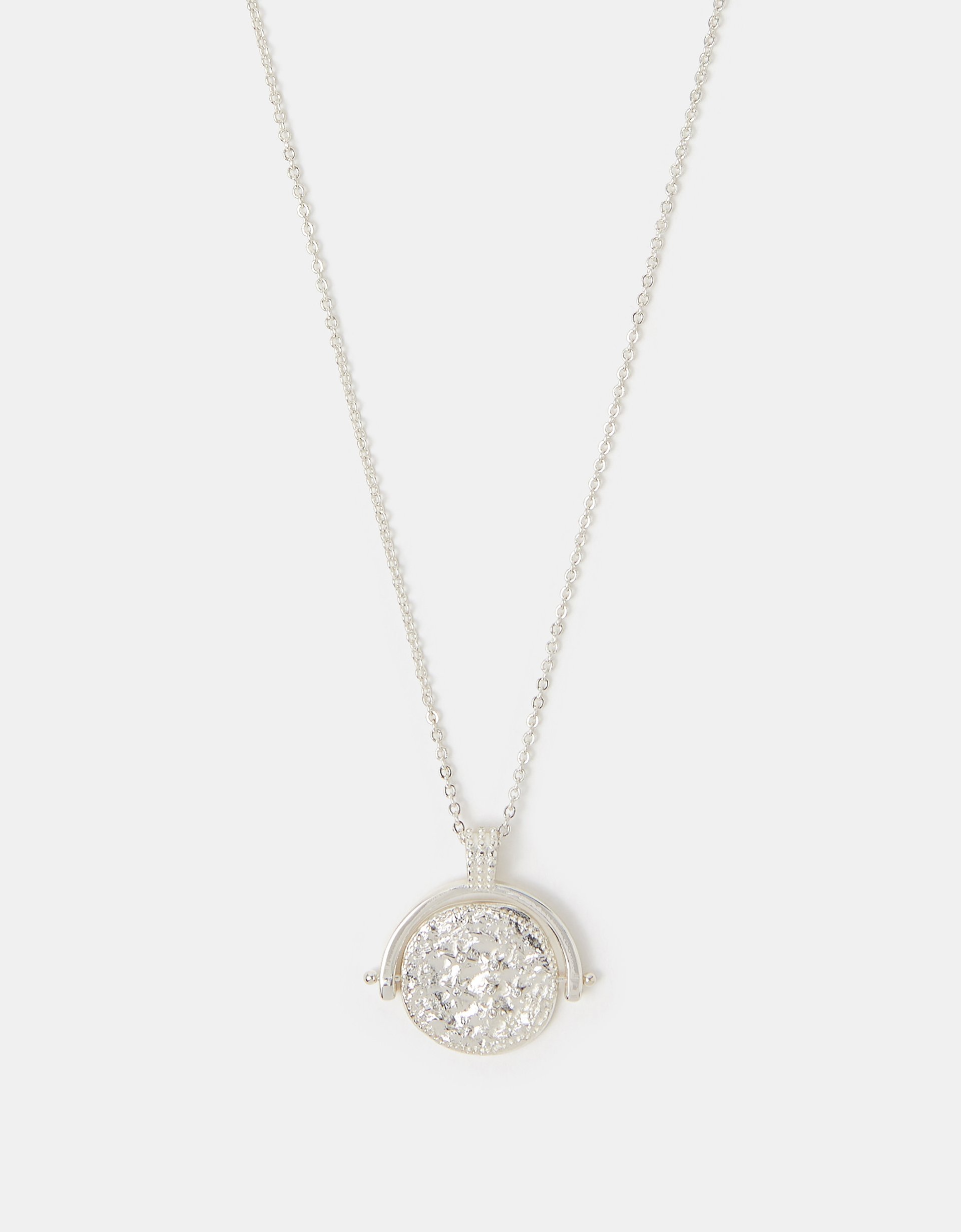 Sterling Silver-plated Coin Spinner Pendant Necklace - Accessorize