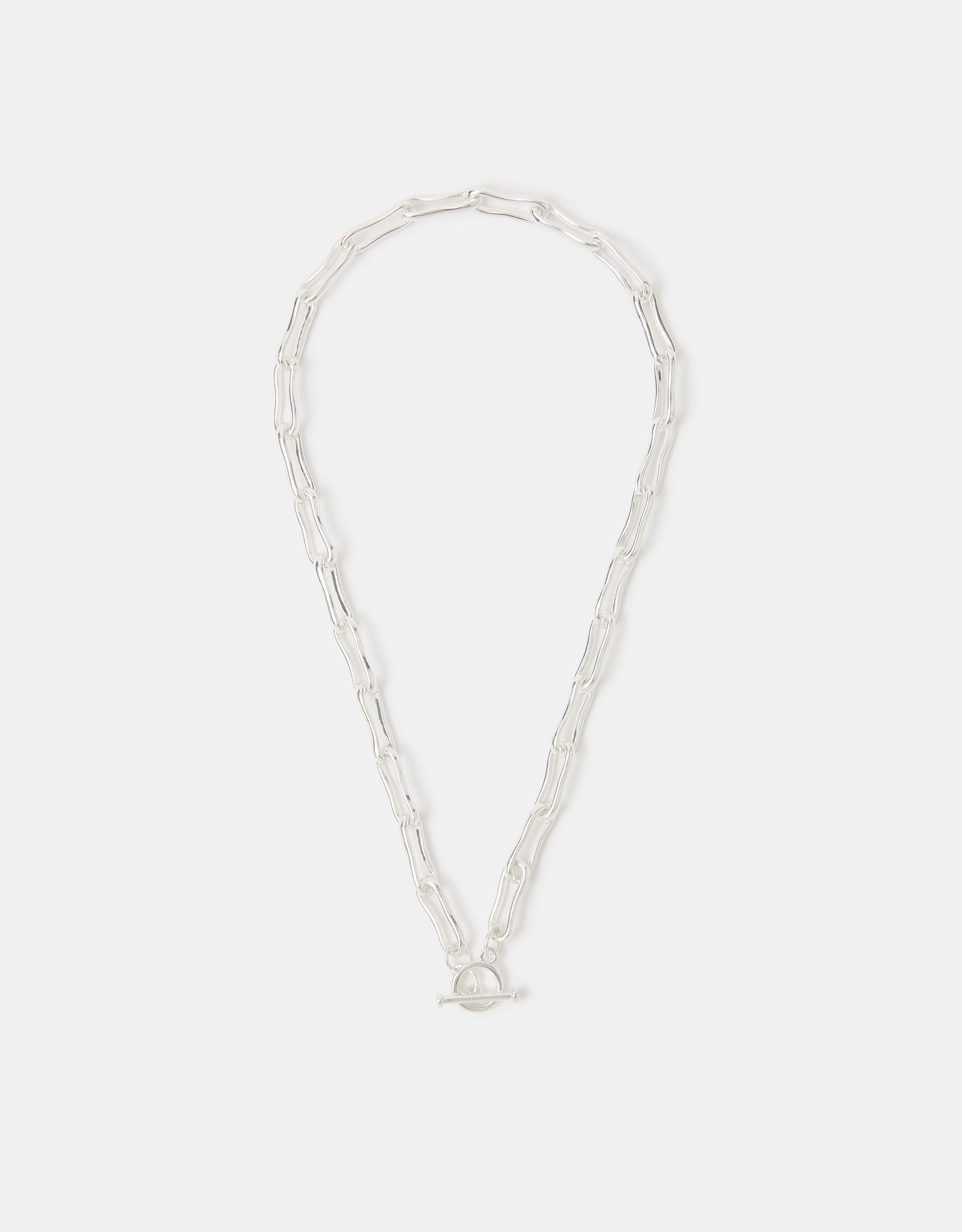 Part of the Z by Accessorize collection: jewellery designed to dazzle and shine, it’s plated in sterling silver for a sparkling, longer-lasting finish.Adding a cool, contemporary feel to your stack. This necklace is designed with one-of-a-kind molten links and a statement T-bar fastening.