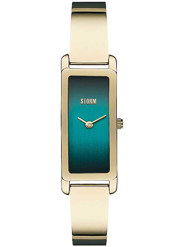 The Storm London Laila is a sleek and elegant ladies watch, featuring 21k gold plating, a graduated teal dial and a highly polished bangle strap. Its minimalist design strikes the perfect balance of style and simplicity, making it a versatile choice and a thoughtful gift.Semi bangle strapJapanese miyota Movement21k Gold platingGradiated teal dialHigh Grade Polished Stainless Steel materials used