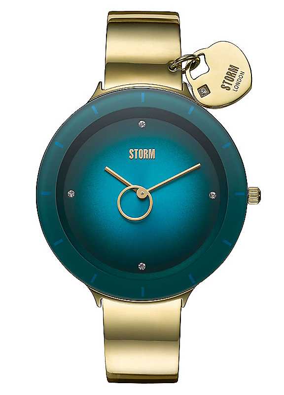 The STORM Liana is a statement ladies watch with an oversized edge to edge glass dial and a highly polished steel band. This slim timepiece has crystal number markers at 3, 6, 9 and 12 with a ring second hand. The Liana is finished with a cute heart Charm accented with a single sparkling crystal.Japanese Miyota MovementOversized DialEdge to Edge Glass21 Karat Gold Ion PlatingCrystalsRing Second HandHigh Grade Polished SteelHeart Charm with Swarovski Crystal Materials Used