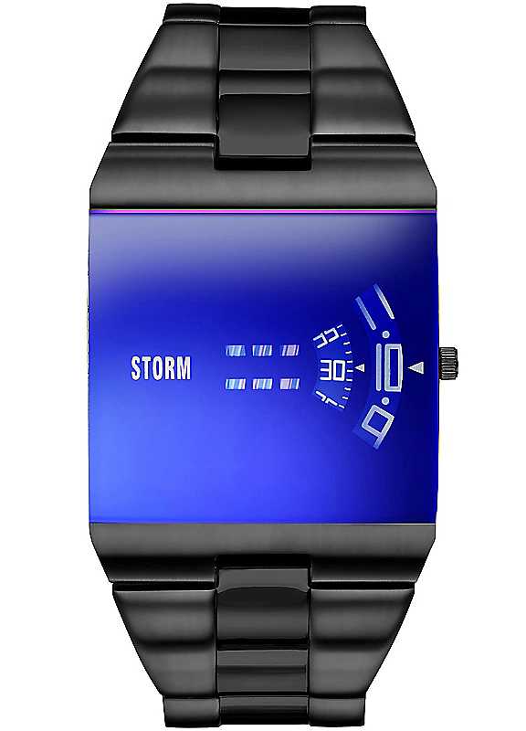 British brand STORM leads the way with statement designs and trend led product. With a multitude of cutting edge designs across both casual and contemporary styles. The STORM New Remi Square has a futuristic appeal with a signature revolving disc movement. The lazer blue glass features 2 revolving discs which show the hours and minutes, as well as a multi-coloured second counter. The New Remi Square is splash resistant and features a signature STORM strap made from slate coloured stainless steel. STORM's signature lazer blue glass is iridescent and may appear different shades of blue under different light.Brand: Storm LondonRevolving Disc Movement Japanese Miyota Movement Lazer Blue Dial materials usedHigh Grade Stainless Steel | quartz watches for men, black analog watch, blue watches for men, square analog watch, metal strap watches, mens stainless steel watch