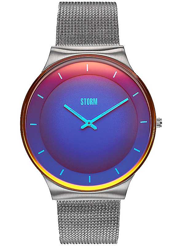 The Storm London Pylo is a sleek, ultra-slim timepiece designed with a striking edge-to-edge glass face. Its graduated dial, crafted with innovative photochromic glass, shifts through a spectrum of vivid colours depending on the angle of light. This effect is achieved using our advanced lazer glass technology, ensuring dynamic colour transitions under different lighting conditions. Complementing its modern aesthetic, the Pylo features a sophisticated mesh band and a brushed stainless steel finish, delivering a perfect blend of style and innovation.Slim watchThick edge to edge glassPhotochromic Glass