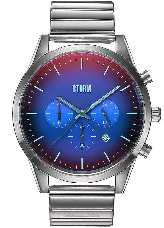 The STORM Crusader is a classic chronograph watch with a modern twist. Photochromic glass enables the stunning graduated dial to change through a range of intense colours. This technique stems from STORM's lazer glass technology.Crusader features a signature STORM band made from brushed stainless steel. It is water resistant to 50 m and has a date feature.Lazer glass is iridescent and may appear in different shades under different light.Brand: Storm LondonPhotochromic glassChronographLuminous dial detailsGraduated dialSignature storm band, date materials usedStainless Steel | round dial watches, men's business casual watches, stainless steel bracelet, casual watches men, silver colour watch, water resistant watches, classic watches men, mens stainless steel watch, chronograph watch, steel strap watch, metal strap watches, metal watch bracelet, analog watch men, blue silver watch