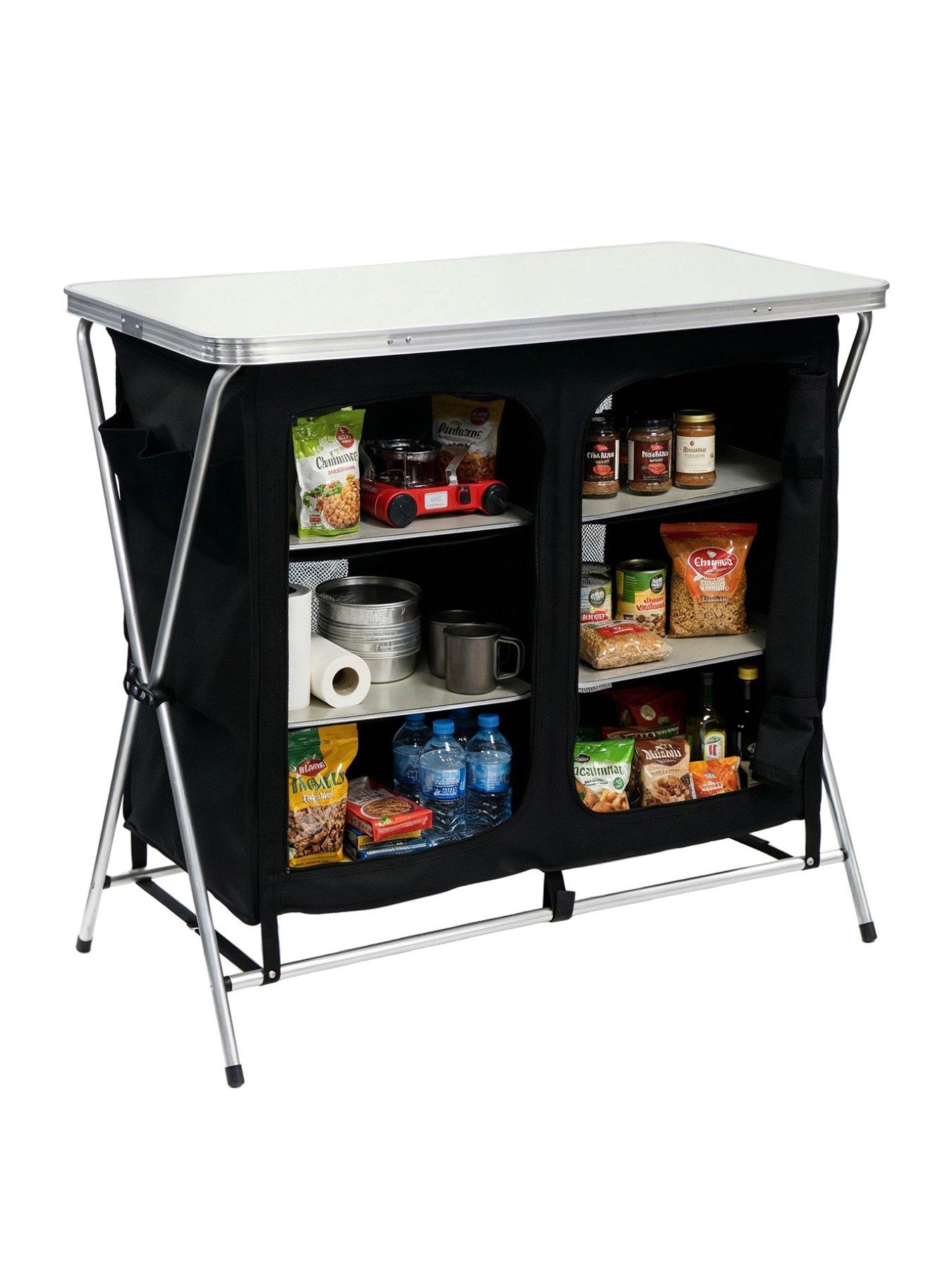 Streetwize Canvas Larder/Camping Table Your Camp Kitchen, Organised And Ready Wherever You Go.Keeping Camping Essentials Organised Just Got A Whole Lot Easier. The Leisurewize Canvas Larder/Table Gives You A Proper, Dedicated Workspace And Storage Unit That Unfolds And Assembles In Just A Few Simple Steps - No Tools Required. Unfold The Frame, Slot In The Six Shelving Boards, Clip On The Top Board, And You'Re Ready To Go.Built Around A Lightweight Aluminium Alloy Frame With A Solid Mdf Work Surface, It Handles Up To 30Kg With Confidence. Six Shelving Boards Keep Food, Cookware, And Equipment Neatly Organised And Off The Ground, While The Durable Pvc Coated Oxford Fabric Body Protects Your Belongings From Dirt And Damp.When It'S Time To Pack Up, Simply Reverse The Steps, Fold It Flat, And It Slips Neatly Into The Included Storage Bag. Perfect For Camping, Caravanning, Picnics, Bbqs, Beach Trips, And Festivals.Simple To Assemble. Solid In Use. Easy To Store.Unfolded: W100 ???? D50 ???? H90.5Cm | Folded: W100 ???? D50 ???? H12Cm Depth: 1100 Mm Height: 900 Mm Width: 530 Mm Simple Tool-Free Assembly &Mdash; Unfold The Frame, Insert The Shelving Boards, And Clip On The Top. Ready In Minutes With No Tools Required Whatsoever. 6 Shelving Boards &Mdash; Six Boards Slide Into Internal Fabric Sleeves To Create Generous, Organised Storage For Food, Cookware, And Camping Equipment. Solid Mdf Work Surface &Mdash; The Clip-On Top Board Provides A Stable, Flat Surface For Food Prep, Cooking, Or Dining At Your Campsite Or Event. 30Kg Load Capacity &Mdash; A Robust Aluminium Alloy Frame Safely Supports Up To 30Kg. Place Heavier Items Low For Best Stability And Balance. Lightweight Aluminium Frame &Mdash; Strong 19Mm Aluminium Tubing Keeps The Overall Unit Light And Easy To Carry Without Sacrificing Structural Integrity. Pvc Coated Oxford Fabric &Mdash; Durable Fabric Body Resists Dirt And Damp, Protecting Your Stored Items From The Realities Of Outdoor Conditions. Folds Flat For Transport &Mdash; Collapses Down To Just 12Cm Deep At W100 &Times; D50 &Times; H12Cm, Making It Easy To Fit Into A Car Boot Or Storage Cupboard. Storage Bag Included &Mdash; Packs Away Neatly Into The Included Storage Bag, Keeping All Components Together And Protected Between Uses. Two Compartments &Mdash; Dual Compartment Design Helps You Separate And Organise Different Types Of Gear, Food, Or Equipment Quickly And Efficiently. Multi-Use Versatility &Mdash; Equally Suited To Camping, Caravanning, Bbqs, Beach Trips, Picnics, And Festivals. One Unit That Earns Its Place Every Trip.