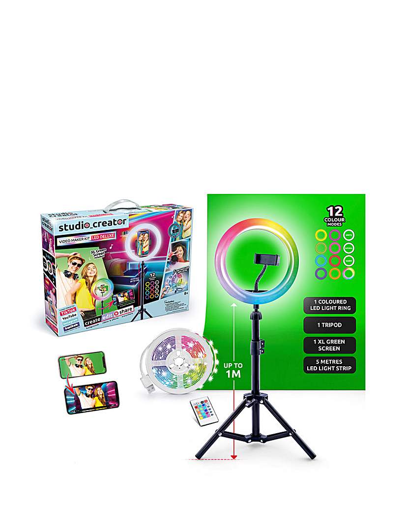 Create your own TikTok, YouTube and Instagram videos with this Video Maker Kit with colour LED ring light & 5m light strip! It contains everything you need to create your own amazing videos: 12 mode colour LED ring light, adjustable phone holder, tripod and a large green screen to get creative backgrounds with all your favourite apps! Easy to set up and ready to go in minutes, this kit also includes a special 5m strip of coloured LED lights with a wireless remote to decorate your space and control your own mood lighting! Wow! Super Quality Contents: 20cm colour LED light ring, adjustable tripod, longer USB cable, XL green screen, 5m LED light strip & remote. FUN Video Maker Kit: Kids' Video Maker kit for TikTok, YouTube & Instagram. Dimmable colour changing LED ring light & 5m LED light strip for creating atmospheric background lighting! 2x2m green screen for ready-to-edit backgrounds & tripod phone holder that adjusts up to 100cm high. Share Content With Friends: Edit in your favourite apps (Not included, download necessary). Batteries included. Ages from 8+.