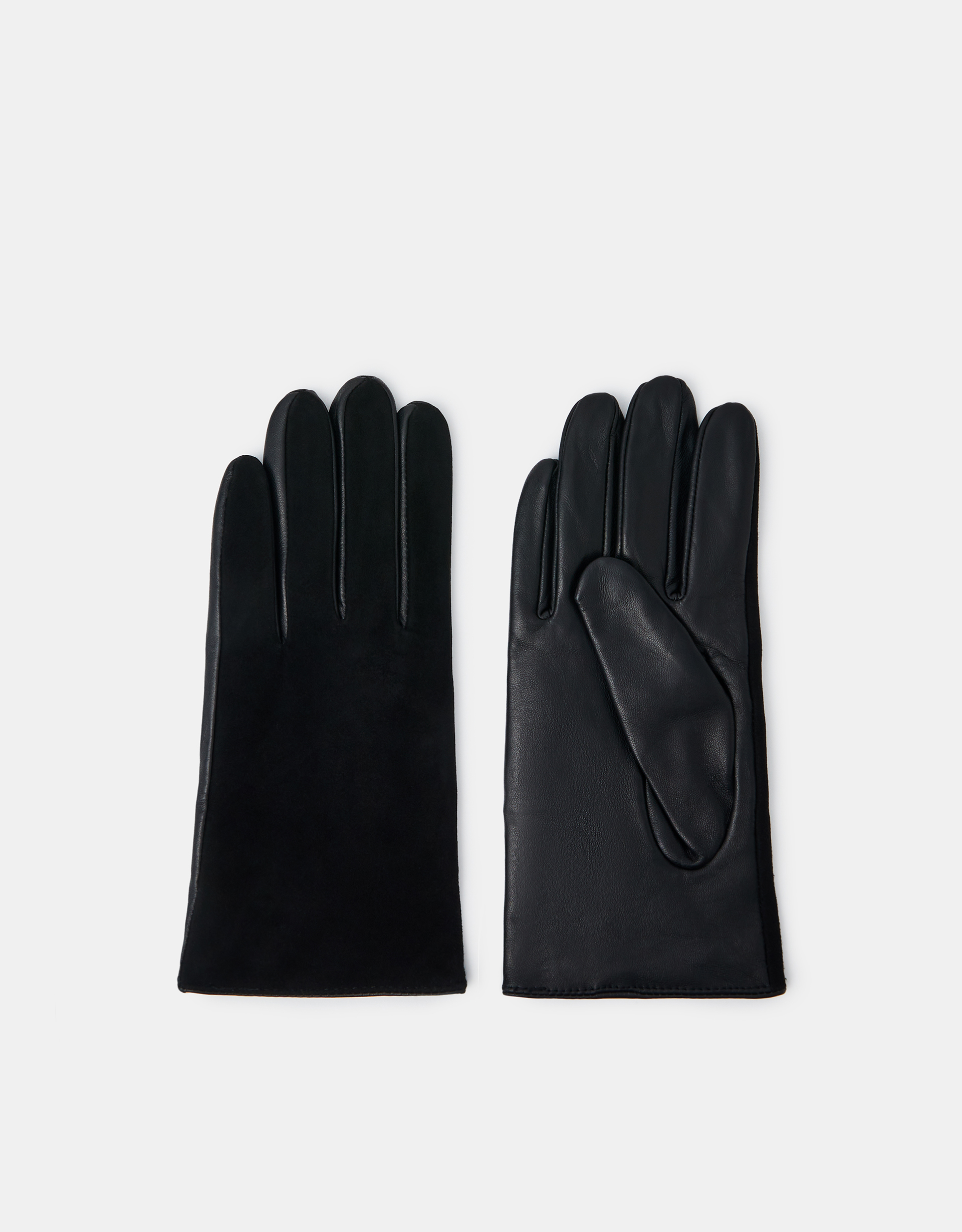 Looking for chic cold weather accessories? These gloves totally nail the brief. Designed in real leather, one side has a soft suede finish. Black