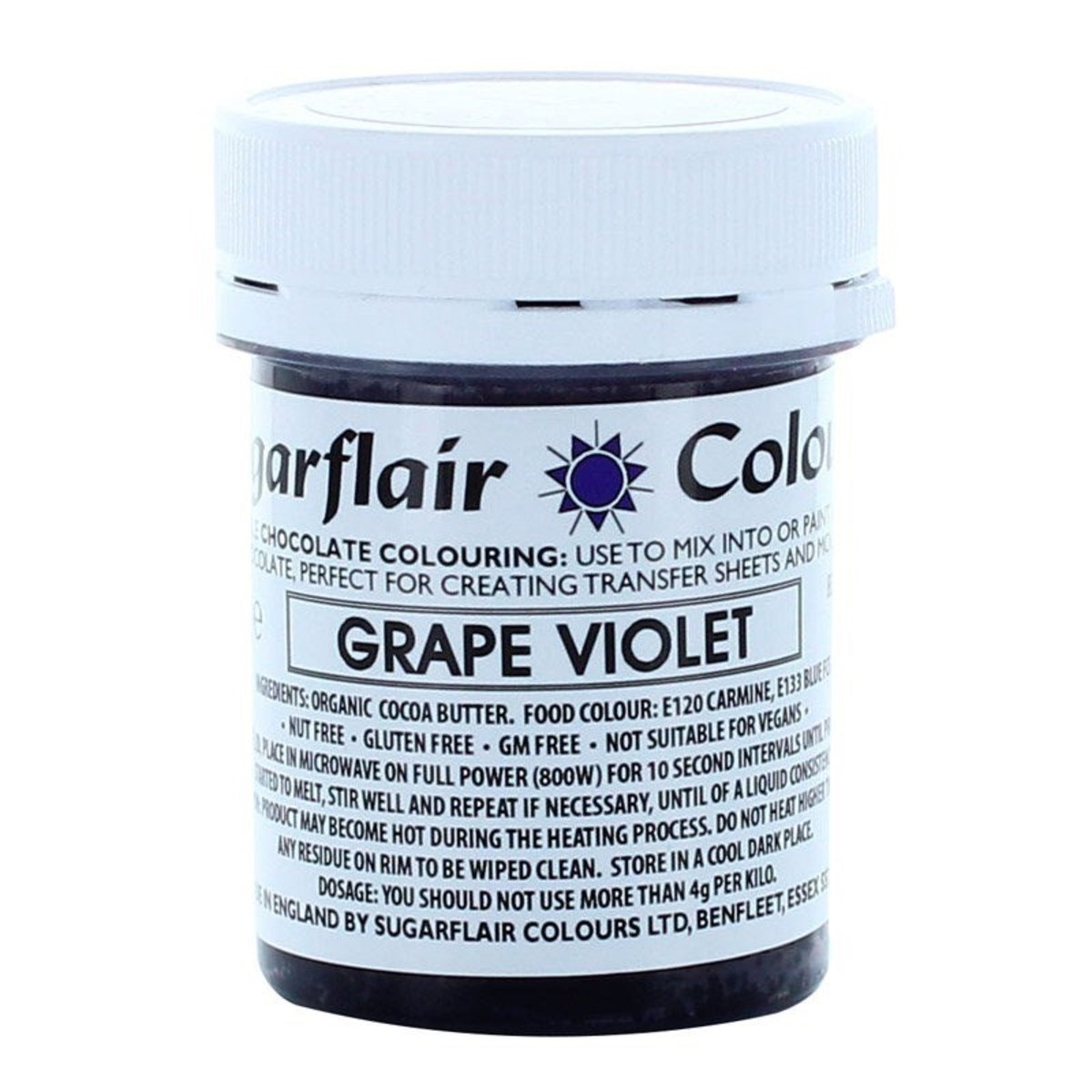 This Sugarflair Organic Cocoa Butter based Chocolate colouring in grape violet is perfect for adding a professional colour to your chocolate work, to match any occasion or themed decoration.