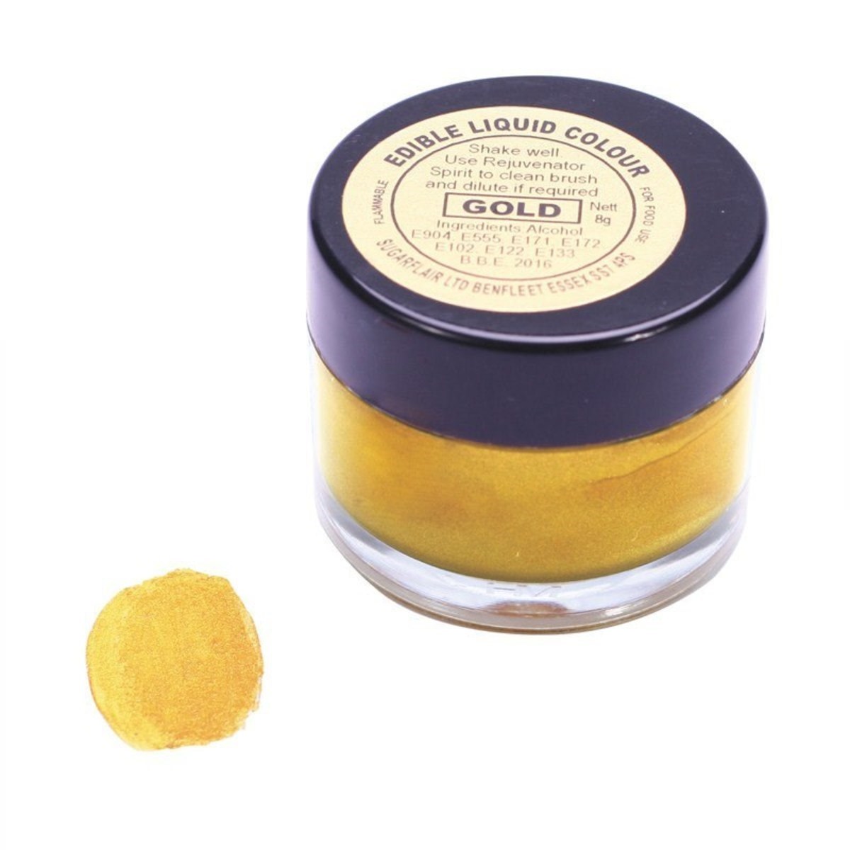 This quick-drying liquid paint in lustrous gold is perfect for brushing onto your cakes and sugar work. It provides a beautiful, finishing touch to your cakes.