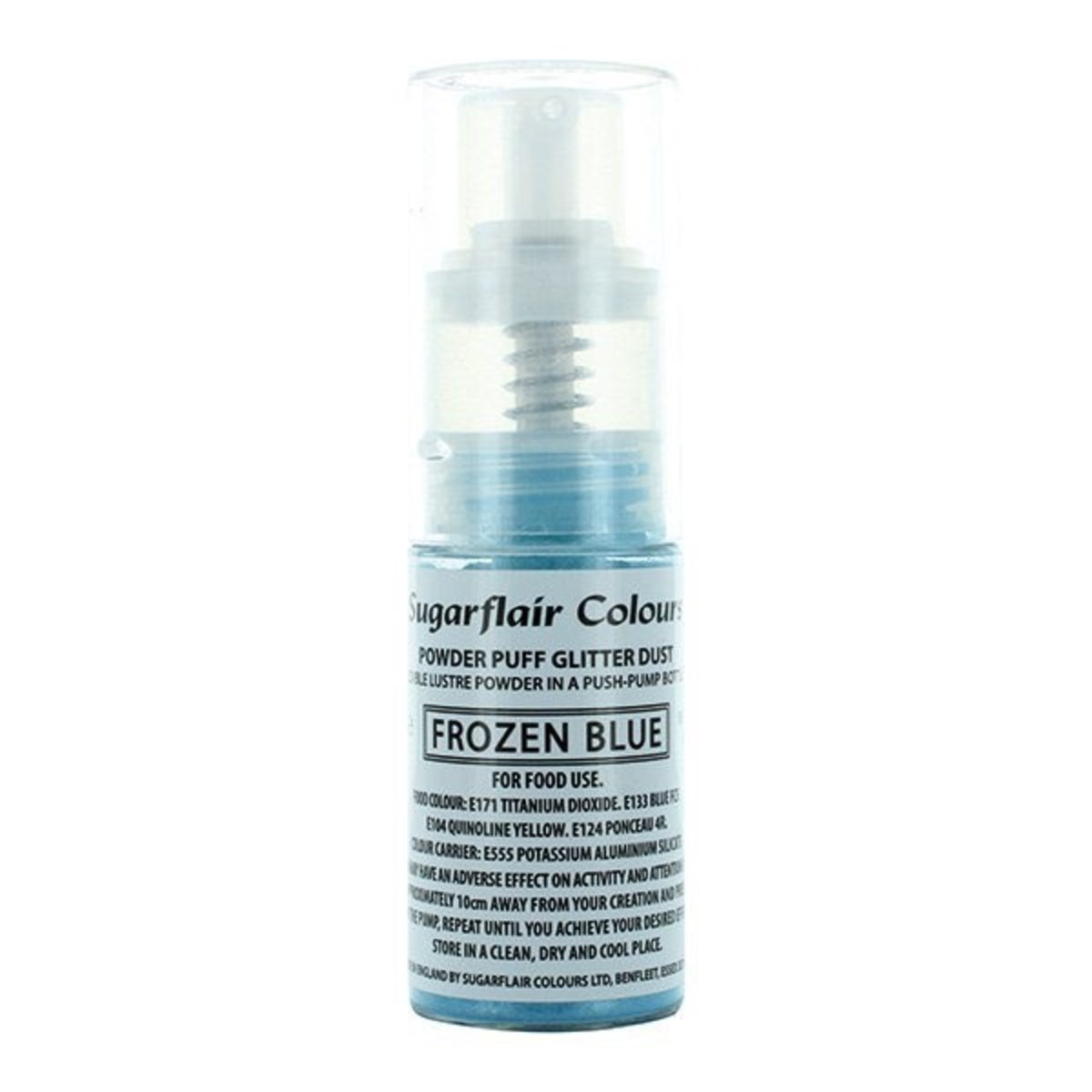 Make your cake stand out from the crowd with a lustrous sparkle. This Sugarflair Powder Puff Glitter Dust in Frozen Blue is non-aerosol spray dust that can be applied to edible models, decorations, or sugar paste for a beautiful eye-catching finish.