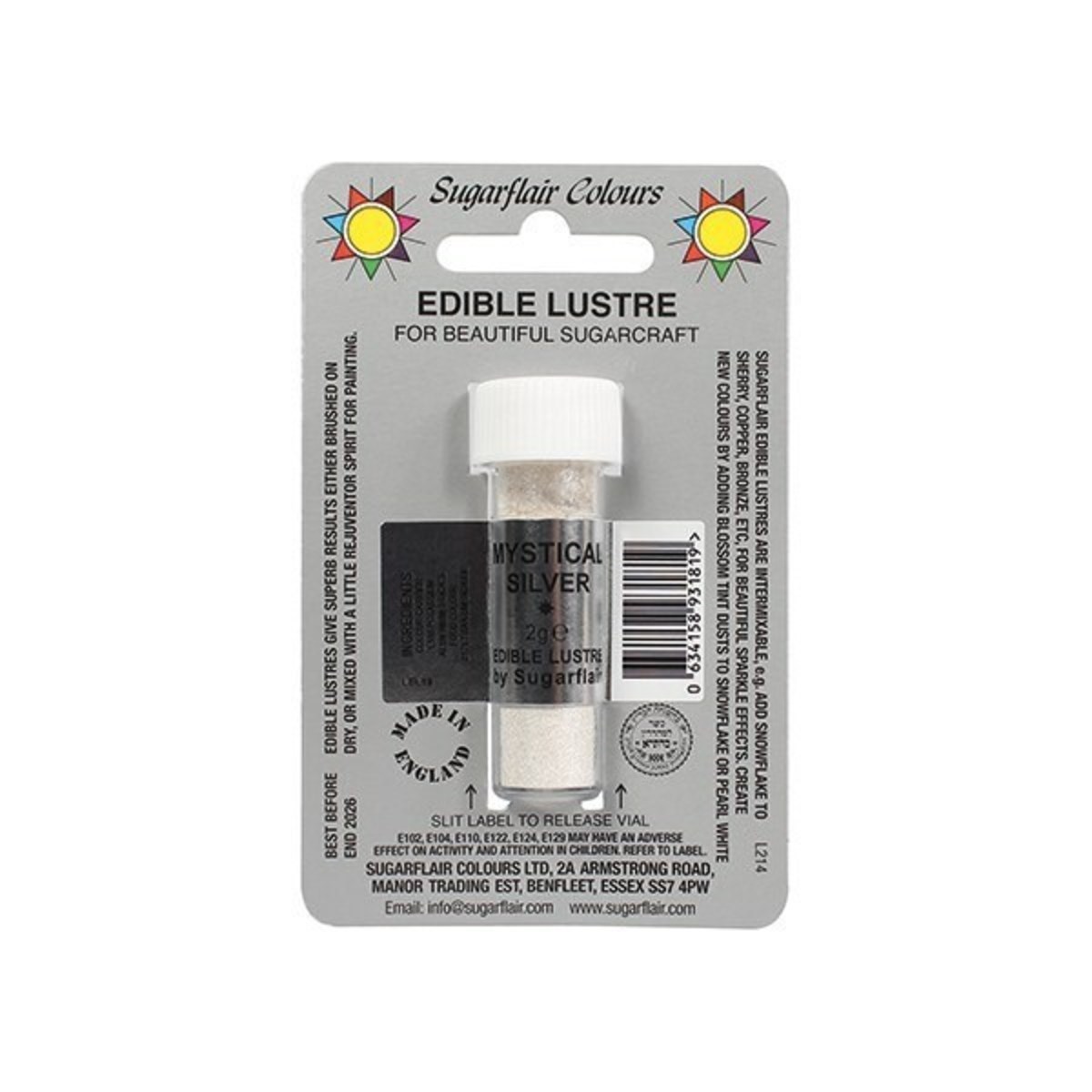 Illuminate your sugar work with this edible lustre by Sugarflair in mystical silver. These dusting powders can also be mixed with rejuvenator spirit or confectioners glaze for painting, achieving multiple different finishes.