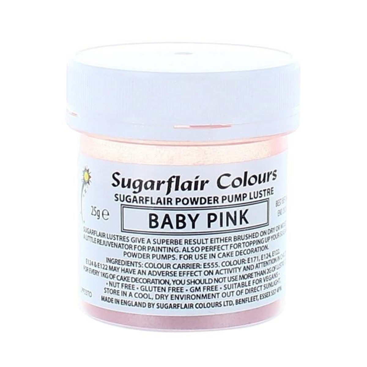 This 25g pot of baby pink edible lustre dusting powder by Sugarflair is perfect for making your cakes and decorations sparkle!