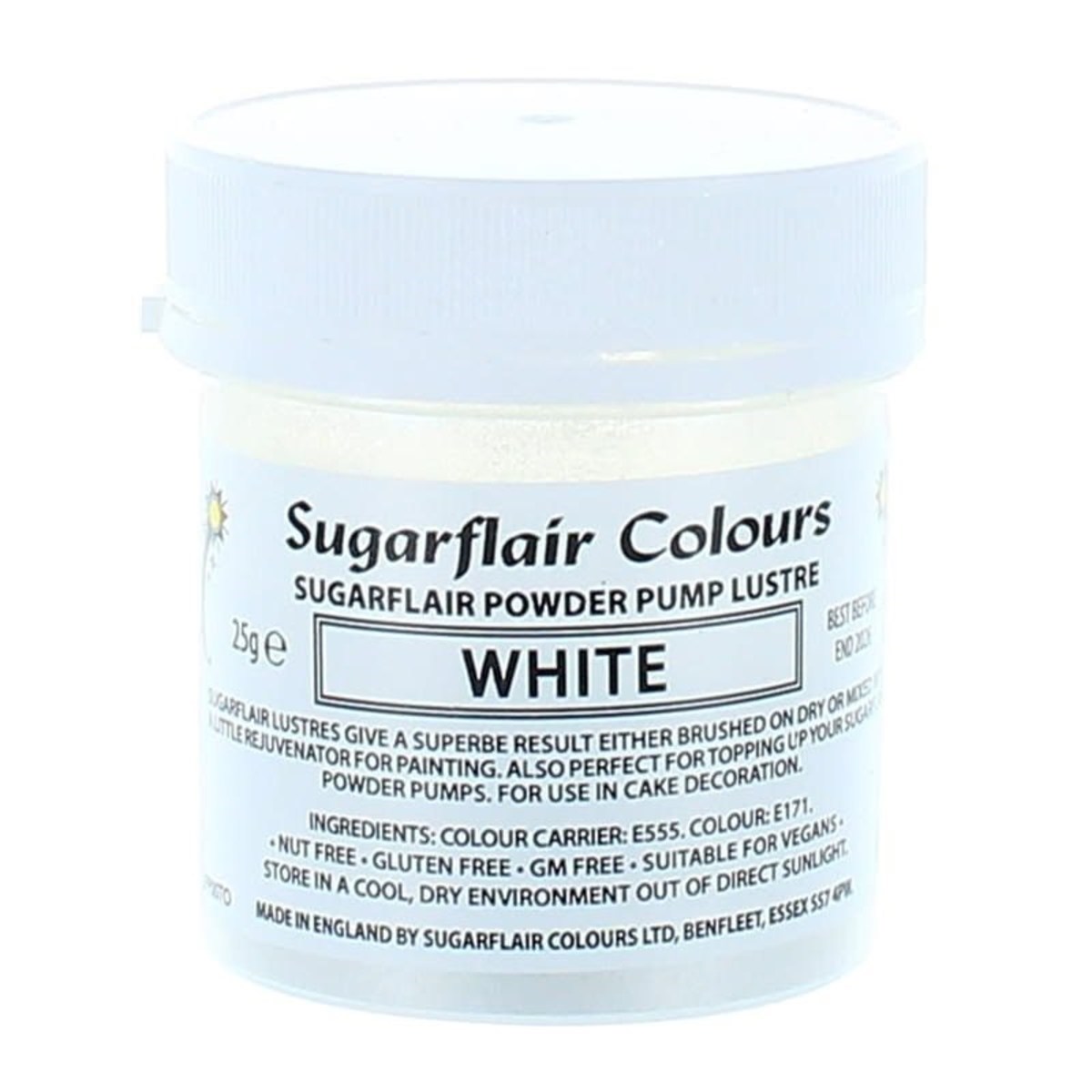 This 25g pot of white edible lustre dusting powder by Sugarflair is perfect for making your cakes and decorations sparkle!