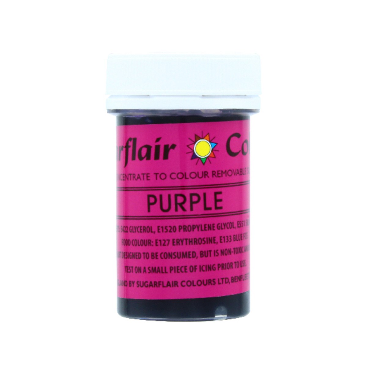 This highly-concentrated non-edible and non-toxic food colouring paste in vibrant purple is specfically designed for use with flower and modelling pastes. Despite being contact safe, any decoration using this pastes must be removed before eating.