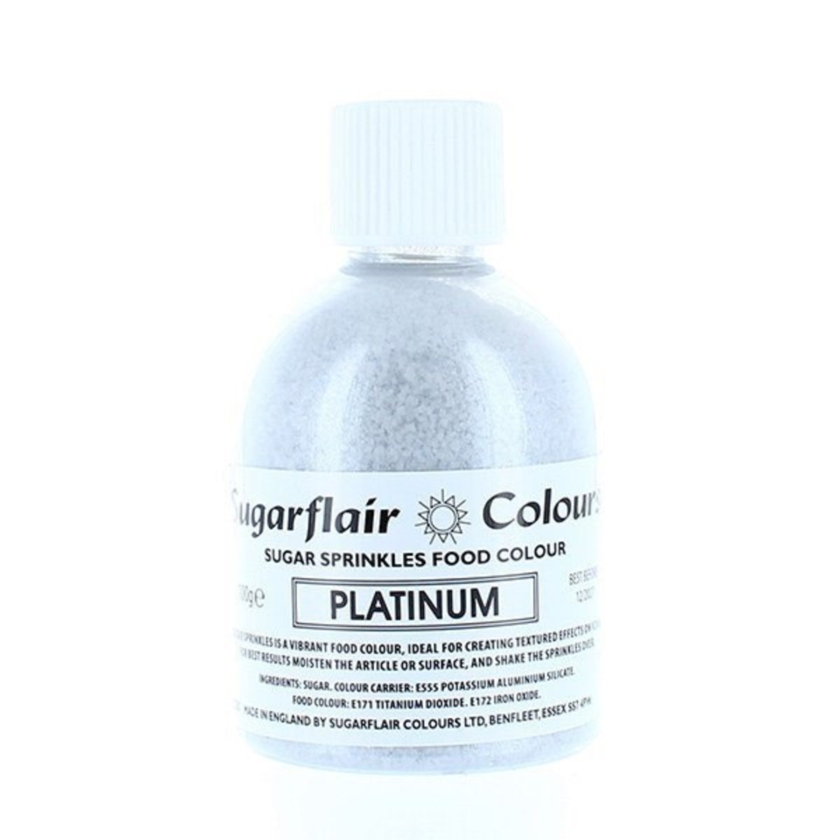 The sugar sprinkles in platinum by Sugarflair are a perfect way to add taste, colour and texture in a versatile yet glamorous way to your decorations.