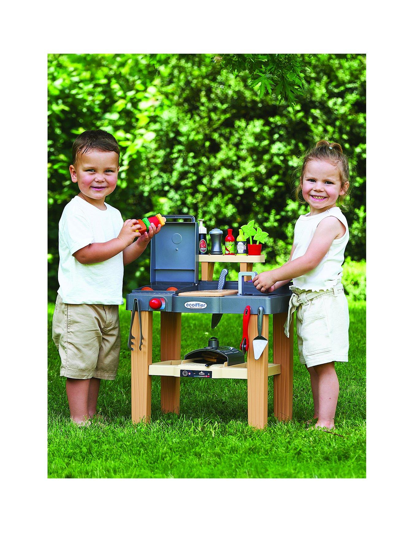Smoby Summer Kitchen Ignite your child's imagination with the Ecoiffier Summer Kitchen, the perfect outdoor playset for little chefs aged 18 months and up. Featuring a pizza oven, plancha grill, and cutting board, this kitchen comes fully equipped with a sink and a wide range of accessories. From preparing delicious pizza to grilling up a feast, your child will enjoy hours of creative cooking fun. Thoughtfully crafted in France, this durable kitchen is designed to inspire culinary adventures and outdoor play. Suitable for ages 18 months and older. Bon appetit! Depth: 49 CM Height: 32 CM Width: 55 CM Assembly: Ready Assembled Warning Message: Warning: This toy does not provide protection Includes: Pizza Oven Plancha GrillCutting BoardSinkIncludes a collection of accessories including different foods and cooking tools Suitable for 18+ months
