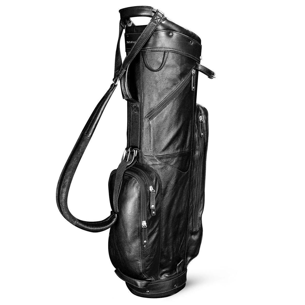 Sun Mountain Leather Golf Cart Bag Key Features - 4-Way Dividers5 PocketsPremium Mongolian Yak LeatherAdjustable Shoulder StrapAccessory HoldersCombining tradition with technology, the Sun Mountain Leather cart bag is made with premium Yak Leather. A classic leather golf bag look that’s been utilised on golf courses for decades.TOP LAYOUTMeasuring 9”, the leather-wrapped 4-way divider top makes organising your golf clubs simple. Complete with an easy-to-transport upper lift assist handle.STORAGEFive accessory pockets and holders, including: a towel holder, pen sleeve, large belly pocket, and a velour-lined valuables pocket.OVERVIEW Crafted with 100% premium Mongolian Yak leather material to ensure the bag is exceptionally durable. Complete with an adjustable strap to keep you comfortable as you travel with your bag.