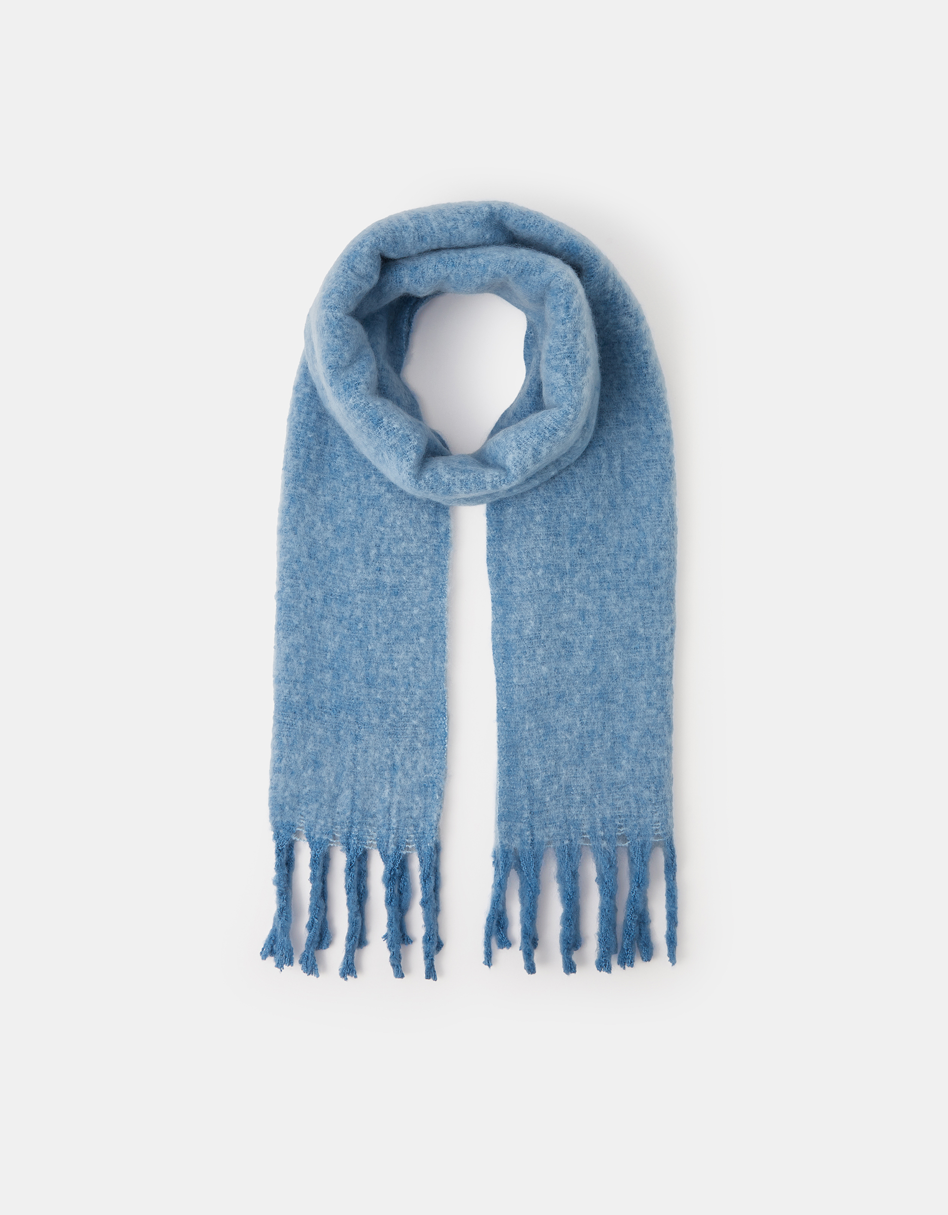Beat the chill with this timeless winter warmer. Stitched with super-soft yarns for a cosy finish, this scarf features classic twist tassel at each end. Blue