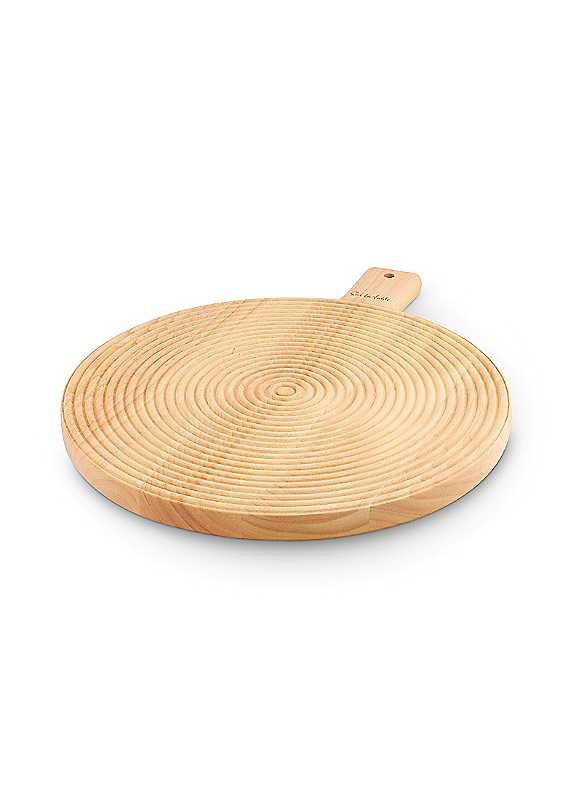 With over 50 years of cooking expertise, we at Sur La Table know what it takes to make mealtime memories with loved ones. This large round paddle board from our Colour Me Happy range is perfect for hosting. Prepare, present and serve meats, cheeses, vegetables, and fruits, all while creating a stunning centrepiece to get your guests talking. There's a strong paddle handle, making it easy and comfortable to move from countertop to table. The board is crafted from durable Hevea wood, so won't warp or crack for years of long-lasting use. The natural colour, complimented with a modern striped pattern, adds style to your spread. It's made from FSC-certified materials to support eco-friendly living. Requires a simple wipe down with a damp cloth for easy cleaning. It also features a built-in hanging hole for easy access and to save valuable cupboard space. Elevate your serving game.Elegant round wooden paddle boardPerfect for serving and presentingHanging hole makes this board easy to store when not in useMade from strong and durable Hevea woodNatural colour with modern striped patternSuitable for all types of food including meat and vegHand wash only to maintain finishHevea Wood