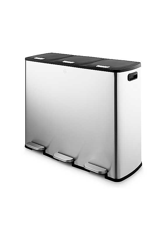 This extra-large stylish Swan 90L recycling bin gives you a complete recycling system for your busy family household, featuring three 30L compartments to easily separate cans, cardboard/paper and glass. It's crafted from high quality stainless steel, complete with fingerprint proof finish for long-lasting durability. The foot pedal system allows for hands-free recycling without straining. This kitchen recycle bin features a modern design, with removable plastic inner buckets that's resistant to stains and odours. The body requires a simple wipe down with a damp cloth to clean.90L capacity complete recycling system3 x 30L compartments separate waste with easeMade from strong and durable stainless steelEasy open and soft close with foot pedal systemEasy to clean removeable inner bucketSide handles for easy manoeuvrabilityConvenient anti-fingerprint spray finishWipe body for a quick and easy cleanWipe body for a quick and easy cleanStainless Steel