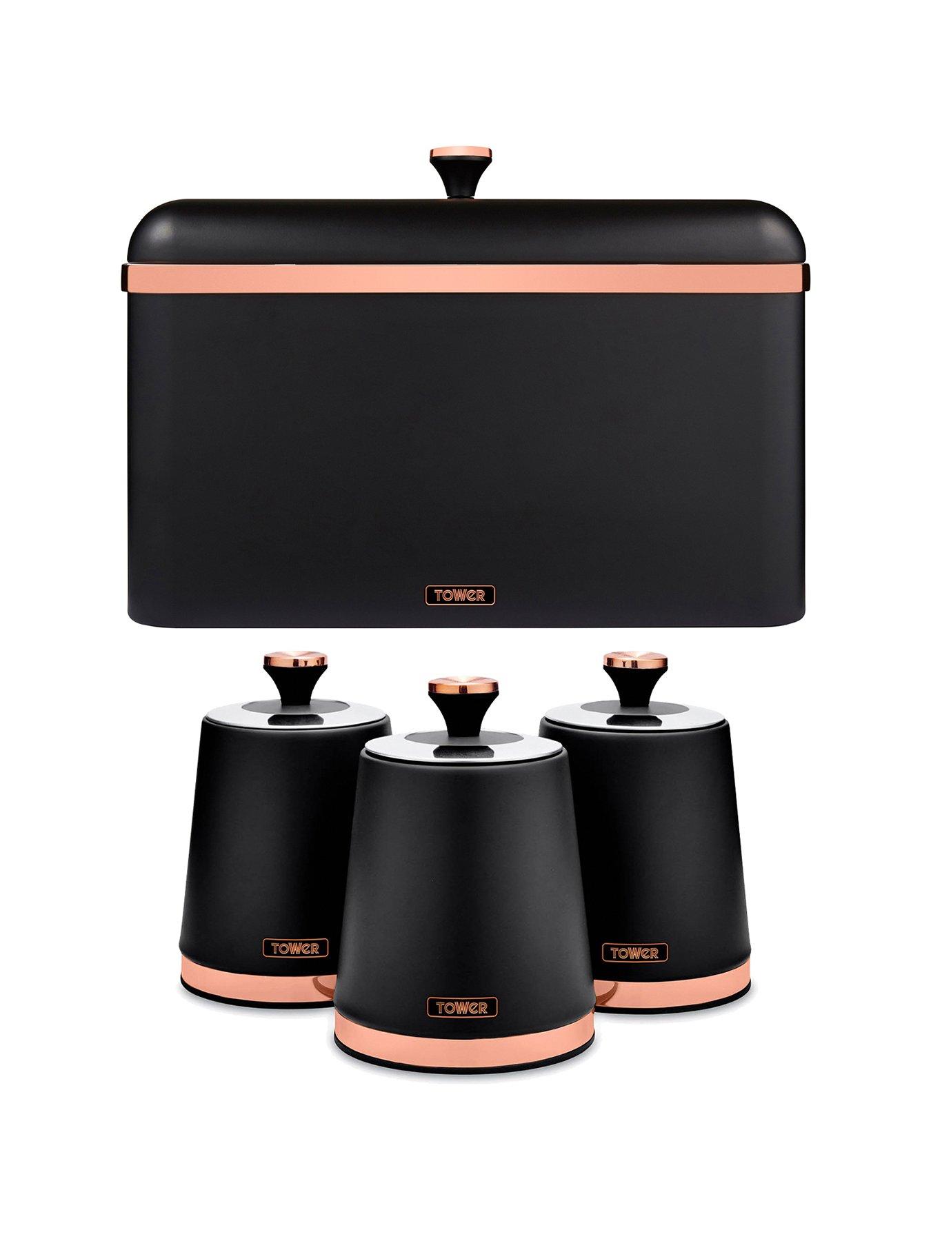 Swan Cavaletto 4 Piece Bread Bin And Storage Canister Set, Black And Rose Gold