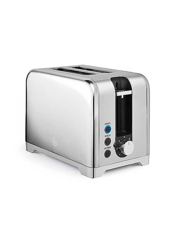 Introducing the evolution of our signature Swan style, the Solace collection features an eye-catching design, complete with high quality stainless steel and premium high gloss finish. This Swan toaster features 2 variable width slots with self-centring function and 7 browning levels to make perfectly toasted rounds of toast, crumpets, bagels or breakfast muffins. Toast from frozen, reheat food without burning or cancel mid-cycle at the touch of a button. This 2-slice toaster also features a removable crumb tray and non-slip feet. Take your breakfast routine to the next level.PREMIUM HIGH GLOSS FINISH: The evolution of our signature Swan style for your kitchen collection7 BROWNING OPTIONS: 7 browning levels to create the perfect textureDEFROST, CANCEL AND REHEAT: Toast from frozen, reheat without burning or cancel mid-cycle at the touch of a buttonREMOVEABLE CRUMB TRAY: Collects all your crumbs to be emptied for quick and easy cleaning2 YEAR GUARANTEE: Assured Swan quality with a 2 year extended guarantee930W 2 Slice painted stainless steel toaster with chrome trim7 Adjustable browning control settingsSelf-centring function for even toastingDefrost Reheat and Cancel functionsRemovable crumb tray for easy cleaningAutomatic safety shut offNonslip feet for stabilityCord length: 70cmCord storage for a clutter free counter topBlue illuminated lights for use in low light settingDimensions approx. 18.9H x 26.4W x 15.6D cm