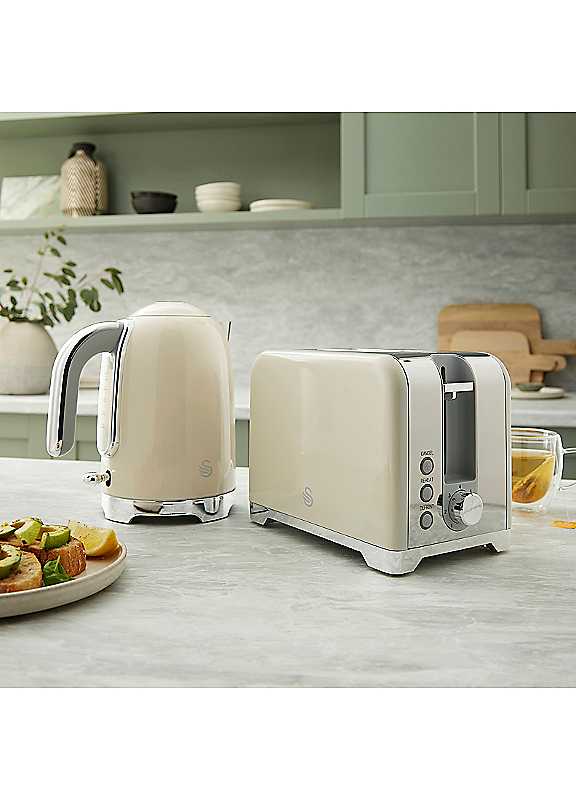Swan Solace Kitchen Set, 1.7L Kettle, 930W 2 Slice Toaster, SK19026CRM + ST19031CRM, Cream with Chrome Trim