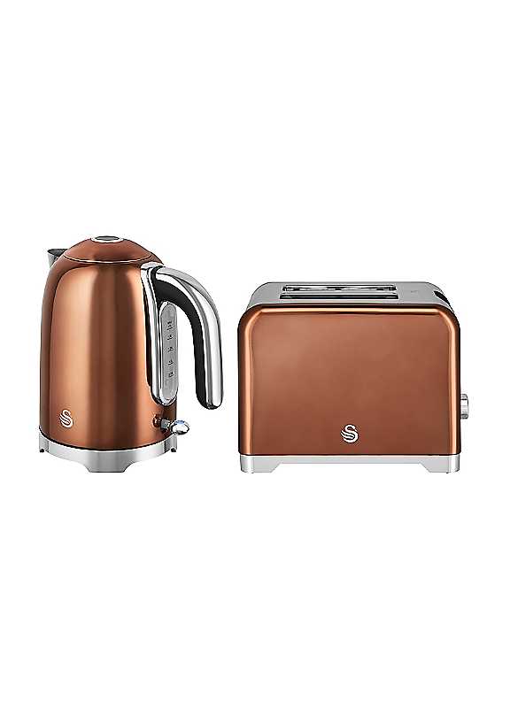 Swan Solace Kitchen Set, 1.7L Rapid Boil Kettle & 2-Slice Toaster with Chrome Trim - Copper