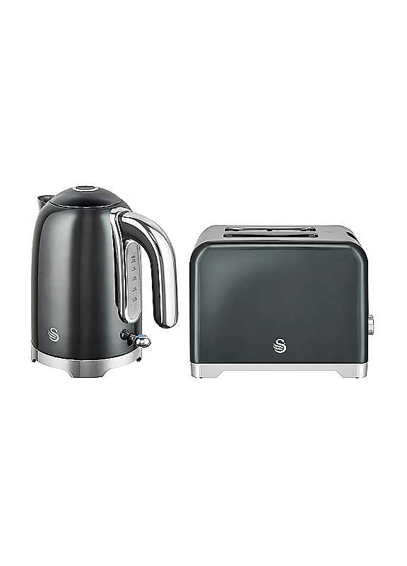 Swan Solace Kitchen Set, 1.7L Rapid Boil Kettle & 2-Slice Toaster with Chrome Trim - Graphite