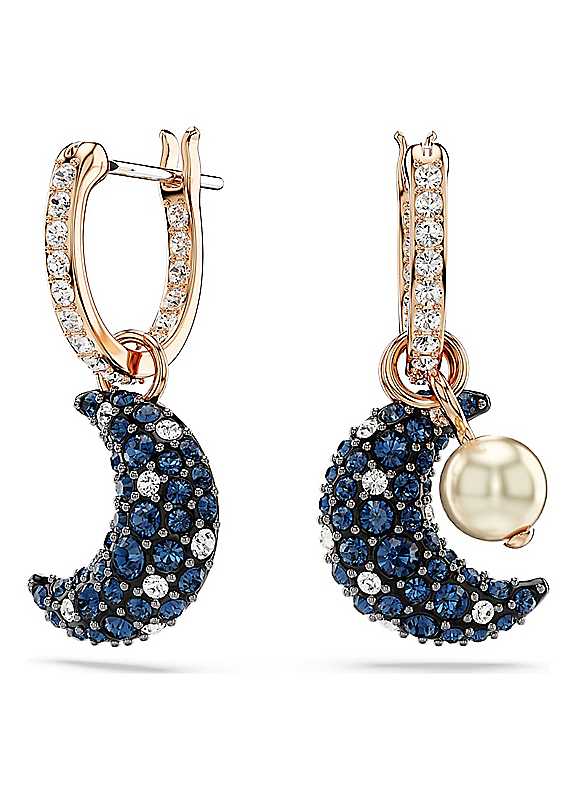 Since 1895, founder Daniel Swarovski's mastery of crystal cutting has defined the company. His enduring passion for innovation and design has made it the world's premier jewellery and accessory brand. Today, the family carries on the tradition of delivering extraordinary everyday style to women around the world. These radiant Luna earrings are a chic tribute to the reflections and shadows of the moon. The rose gold-tone plated design features an elegant pair of crescent moons, each embellished with a pave of crystals in dark tones. One earring holds a detachable pearl. A perfect choice, whatever phase of style you're in.Brand: Swarovski