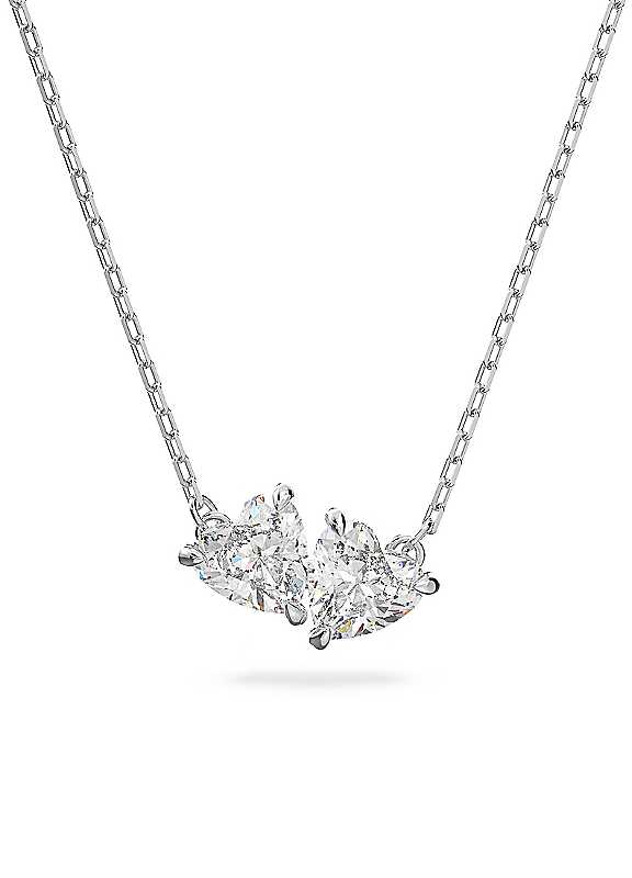 Classic design with a modern twist: This Swarovski necklace from our Mesmera Collection features beautiful stones shaped like twin hearts. Rhodium plating complements the chain's understated elegance with a touch of romance. This charming long necklace is the perfect gift for a loved one.Article no.: 5517117Collection: Mesmera AttractLength: 38 cmPendant size: 0.8 x 1.5 cmMaterial: Crystals, Rhodium plated, ZirconiaColour: WhiteClasp type: Lobster