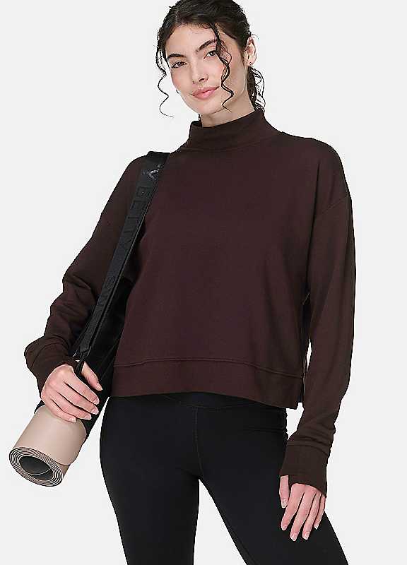 Sweaty Betty After Class Funnel Neck Sweatshirt - Sable Brown - Size S
